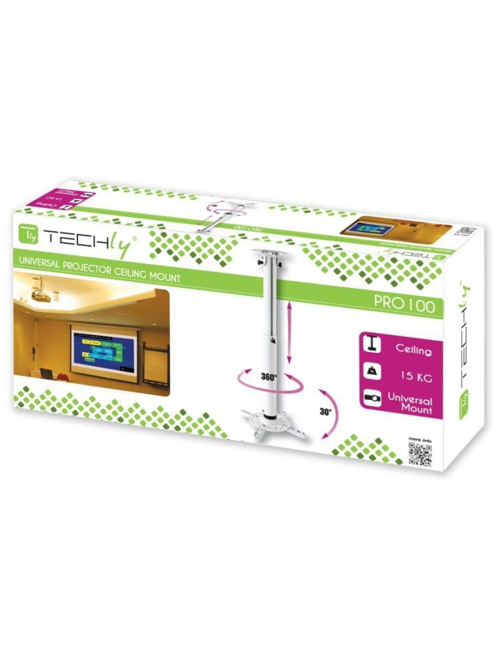 Profi Deckenhalterung fr Beamer ausziehbar 500770 mm Wei Hersteller Techly (ICAPM104MW)