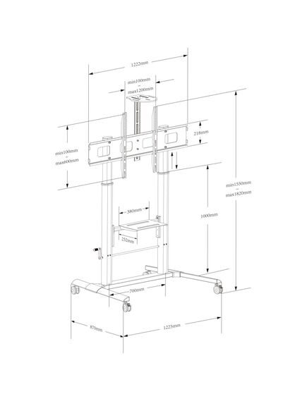 Techly ICA-TR230 multimedia cart/stand Black Flat panel