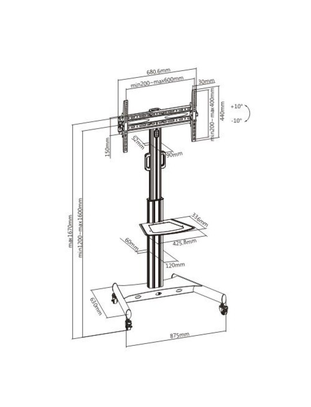 Techly Trolley Floor Support with Shelf LCD TV/LED 32-65