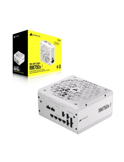 Corsair RM750x. Συνολική ισχύς: 750 W, Τάση εισόδου AC: 100 - 240 V, Συχνότητα εισόδου AC: 47 - 63 Hz. Υποδοχή τροφοδοσίας μητρικής πλακέτας: 24-pin ATX, Μήκος καλωδίου τροφοδοσίας μητρικής πλακέτας: 61 cm, Μήκος καλωδίου τροφοδοσίας SATA: 800 mm. σκοπός: PC, Συντελεστής μορφής μονάδας τροφοδοτικού (PSU): ATX, Πιστοποίηση 80 PLUS: 80 PLUS Gold. Χρώμα προϊόντος: Λευκός (Άσπρος), Τύπος ψύξης: Ενεργός, Διάμετρος ανεμιστήρα: 14 cm. Βάρος: 3,2 kg