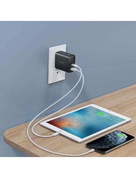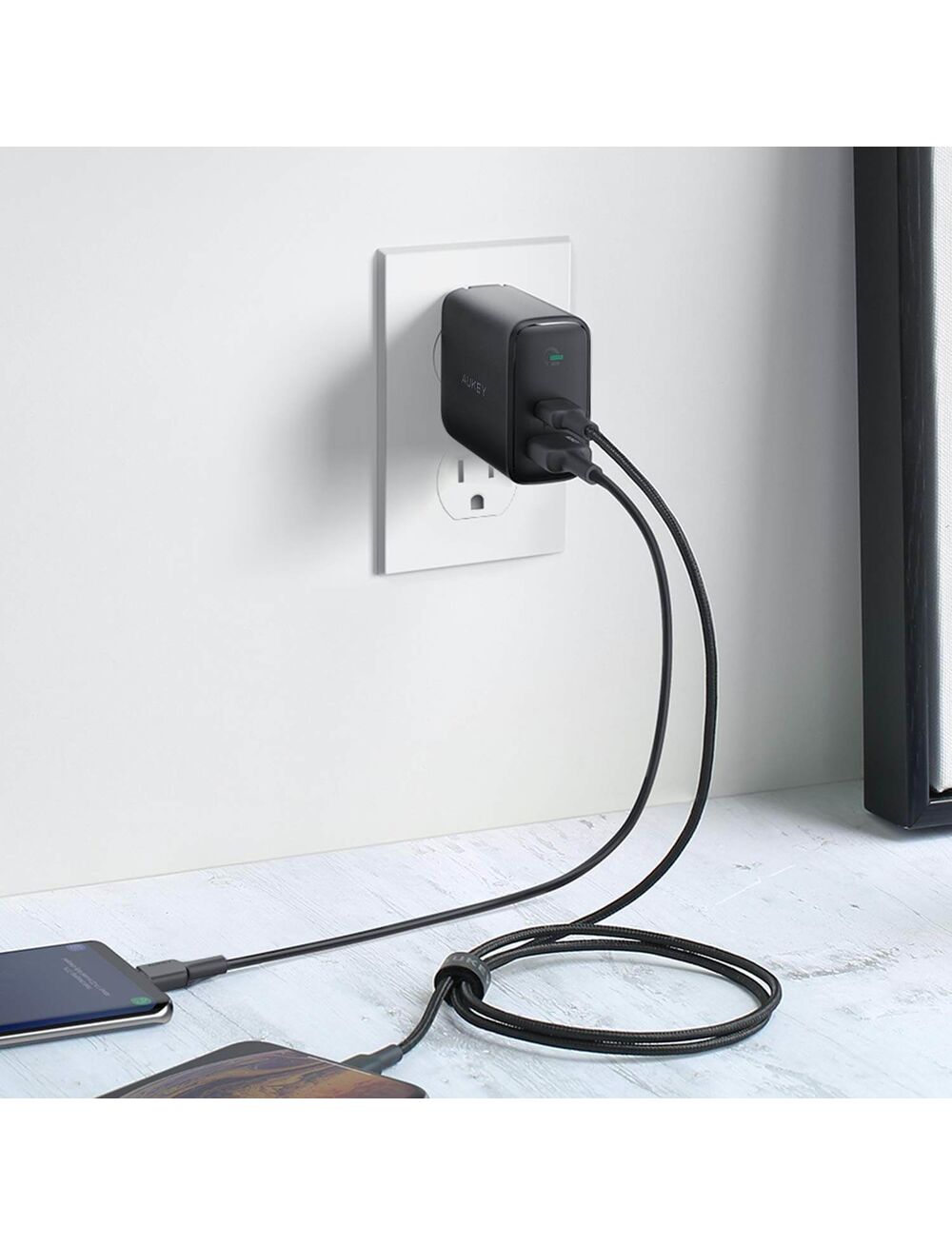 AUKEY Focus Duo. Τύπος φορτιστή: Εσωτερικός (Εσωτερικού χώρου), Τύπος πηγής ρεύματος: AC, Συμβατότητα φορτιστή: Παγκόσμιος. Τάση εισόδου: 100 - 240 V, Τάση εξόδου (μέγιστη): 20 V. Αριθμός θυρών USB τύπου C: 1. Χρώμα προϊόντος: Μαύρος (Μαύρο)