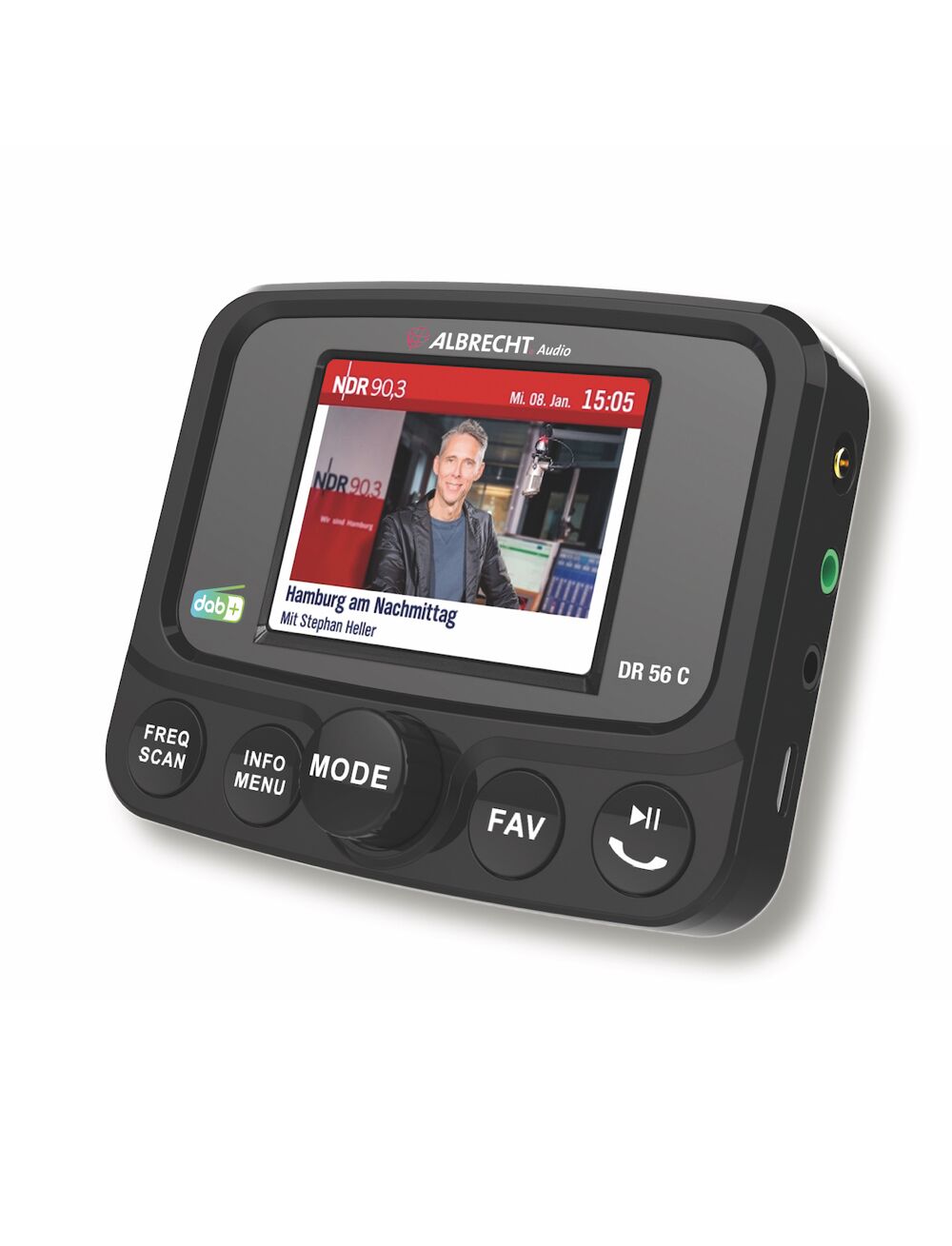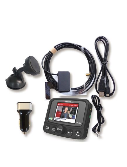 Albrecht DR56C. Ασύρματη λειτουργία: Αυτοκίνητο, Τύπος επιλογέα συντονισμού: Ψηφιακός, Υποστηριζόμενες συχνότητες: DAB, DAB+, MF. Είδος οθόνης: TFT, Μέγεθος οθόνης: 6,1 cm (2.4"). Σύνδεσμος USB: Micro-USB. Χρώμα προϊόντος: Μαύρος (Μαύρο), Τύπος κεραίας: Εξωτερικός. Πηγή ισχύος: USB