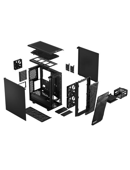 Fractal Design Meshify 2 Compact. Τύπος: PC, Χρώμα προϊόντος: Μαύρος (Μαύρο), Υποστηριζόμενοι συντελεστές μορφής μητρικής πλακέτας: ATX, micro ATX, Mini-ITX. Υποστηριζόμενοι συντελεστές μορφής παροχής ενέργειας: ATX. Εγκατεστημένοι εμπρόσθιοι ανεμιστήρες: 2x 140 mm, Υποστηριζόμενες διάμετροι εμπρόσθιων ανεμιστήρων: 120,140 mm, Εγκατεστημένοι οπίσθιοι ανεμιστήρες: 1x 120 mm. Υποστηριζόμενα μεγέθη μονάδας σκληρού δίσκου: 2.5,3.5". Πλάτος: 210 mm, Βάθος: 424 mm, Ύψος: 475 mm