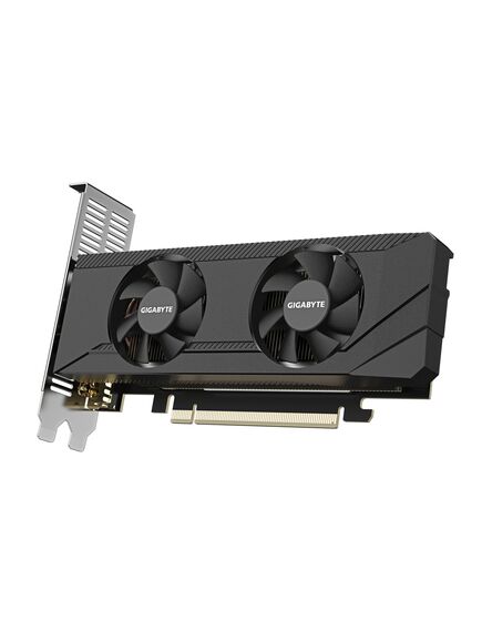 Gigabyte GeForce RTX 3050 OC Low Profile 6G. Οικογένεια επεξεργαστών γραφικών: NVIDIA, Επεξεργαστής γραφικών: GeForce RTX 3050, Συχνότητα επεξεργαστή: 1477 MHz. Διακριτή κάρταμνήμης προσαρμογέα γραφικών: 6 GB, Τύπος μνήμης προσαρμογέα γραφικών: GDDR6, Αγωγός μνήμης: 96 bit, Ταχύτητα μνήμης: 14000 MHz. Μέγιστη ανάλυση: 7680 x 4320 εικονοστοιχεία. Έκδοση DirectX: 12 Ultimate, Έκδοση OpenGL: 4.6. Δίαυλος PCI: PCI Express 4.0. Τύπος ψύξης: Ενεργός, Αριθμός ανεμηστήρων: 2 ανεμιστήρας (-ες)