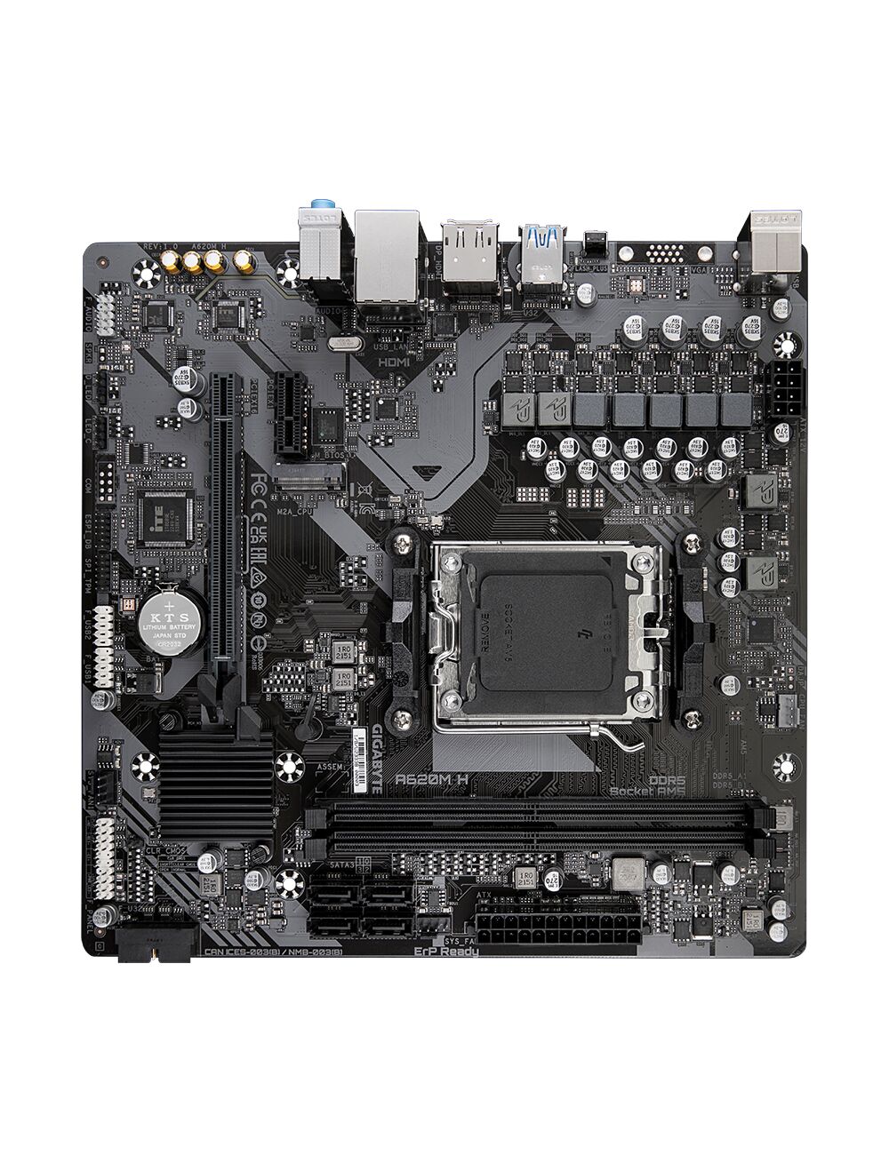 Gigabyte A620M H (rev. 1.0). Κατασκευαστής επεξεργαστή: AMD, Υποδοχή επεξεργαστή: Υποδοχή AM5, Επεξεργαστής: AMD Ryzen™ 5, AMD Ryzen 7 7th Gen, AMD Ryzen 9 7th Gen. Υποστηριζόμενοι τύποι μνήμης: DDR5-SDRAM, Μέγιστη εσωτερική μνήμη: 96 GB, Τύποι υποδοχών μνήμης: DIMM. Υποστηριζόμενες διεπαφές συσκευών αποθήκευσης: M.2, SATA III, Υποστηριζόμενοι τύποι μονάδας αποθήκευσης: HDD & SSD, Επίπεδα RAID: 0, 1, 10. Μέγιστη ανάλυση: 4096 x 2160 εικονοστοιχεία. Σύνδεσμος USB: USB Τύπου-A, USB Type-C