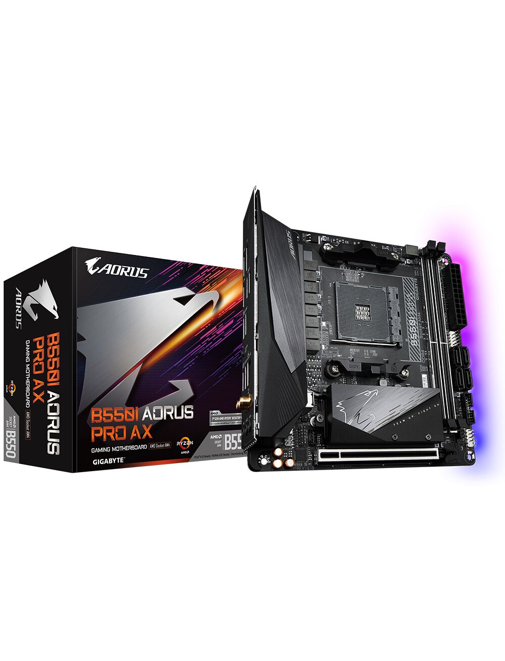Gigabyte B550I AORUS PRO AX 10 Motherboard MiniITX Socket AM4 AMD B550 Chipsatz USBC Gen2 USB 32 Gen 1 USB 32 Gen 2 25 Gigabit LAN Bluetooth WiFi OnboardGrafik (CPU erforderlich) HD Audio (8Kanal)