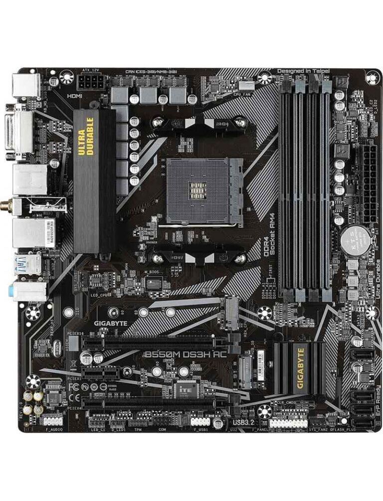Gigabyte B550M DS3H AC AMD Socket AM4 3rd Generation AMD Ryzen 3 3rd Generation AMD Ryzen 5 AMD Ryzen 5 5th Gen 3rd Generation AMD Socket AM4 DDR4SDRAM 128 GB (B550M DS3H AC)