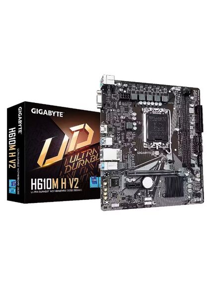 Gigabyte H610M H V2. Κατασκευαστής επεξεργαστή: Intel, Υποδοχή επεξεργαστή: LGA 1700, Επεξεργαστής: Intel® Celeron®, Intel® Core™ i3, Intel® Core™ i5, Intel® Core™ i7, Intel® Core™ i9,.... Υποστηριζόμενοι τύποι μνήμης: DDR5-SDRAM, Μέγιστη εσωτερική μνήμη: 96 GB, Τύποι υποδοχών μνήμης: DIMM. Υποστηριζόμενες διεπαφές συσκευών αποθήκευσης: M.2, SATA III, Υποστηριζόμενοι τύποι μονάδας αποθήκευσης: HDD & SSD. Οικογένεια προσαρμογέα γραφικών: Intel, Κάρτα γραφικών 01: HD Graphics, Μέγιστη ανάλυση: 4096 x 2304 εικονοστοιχεία. Σύνδεσμος USB: USB Τύπου-A