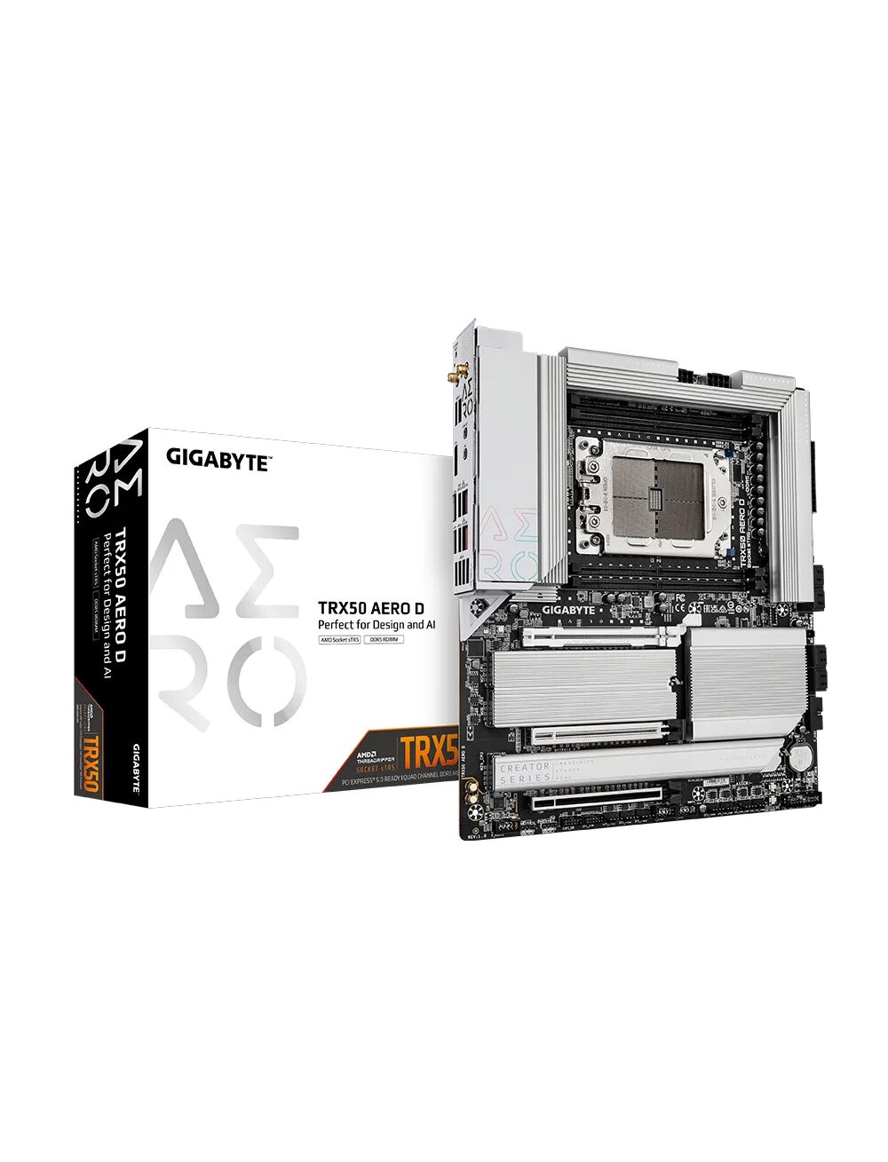 Gigabyte TRX50 AERO D 10 Motherboard EATX Socket sTR5 AMD TRX50 Chipsatz USB 32 Gen 1 USB 32 Gen 2 USB4 USBC 32 Gen 2x2 10 Gigabit LAN 25 Gigabit LAN Bluetooth WiFi 7 HD Audio (8Kanal) (TRX50 AERO D)