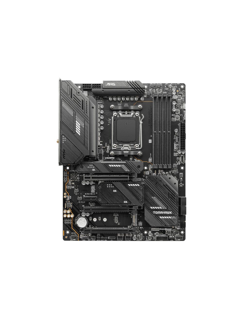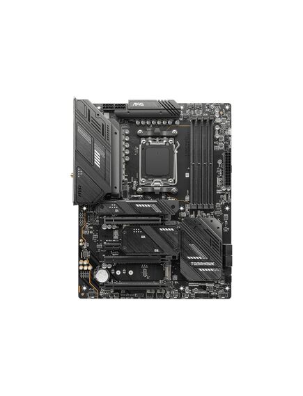 MSI MAG X670E TOMAHAWK WIFI. Κατασκευαστής επεξεργαστή: AMD, Υποδοχή επεξεργαστή: Υποδοχή AM5, Επεξεργαστής: AMD Ryzen™ 7. Υποστηριζόμενοι τύποι μνήμης: DDR5-SDRAM, Μέγιστη εσωτερική μνήμη: 128 GB, Κανάλια μνήμης: Δικάναλο. Υποστηριζόμενες διεπαφές συσκευών αποθήκευσης: M.2, SATA, Επίπεδα RAID: 0, 1, 10. Τύπος διασύνδεσης δικτύου Ethernet: 2.5 Gigabit Ethernet, Ελεγκτής LAN: Realtek RTL8125-BG, Πρότυπο Top Wi-Fi: Wi-Fi 6E (802.11ax). Εξάρτημα για: PC, Form factor μητρικής πλακέτας (motherboard): micro ATX, Οικογένεια chipset μητρικής κάρτας: AMD