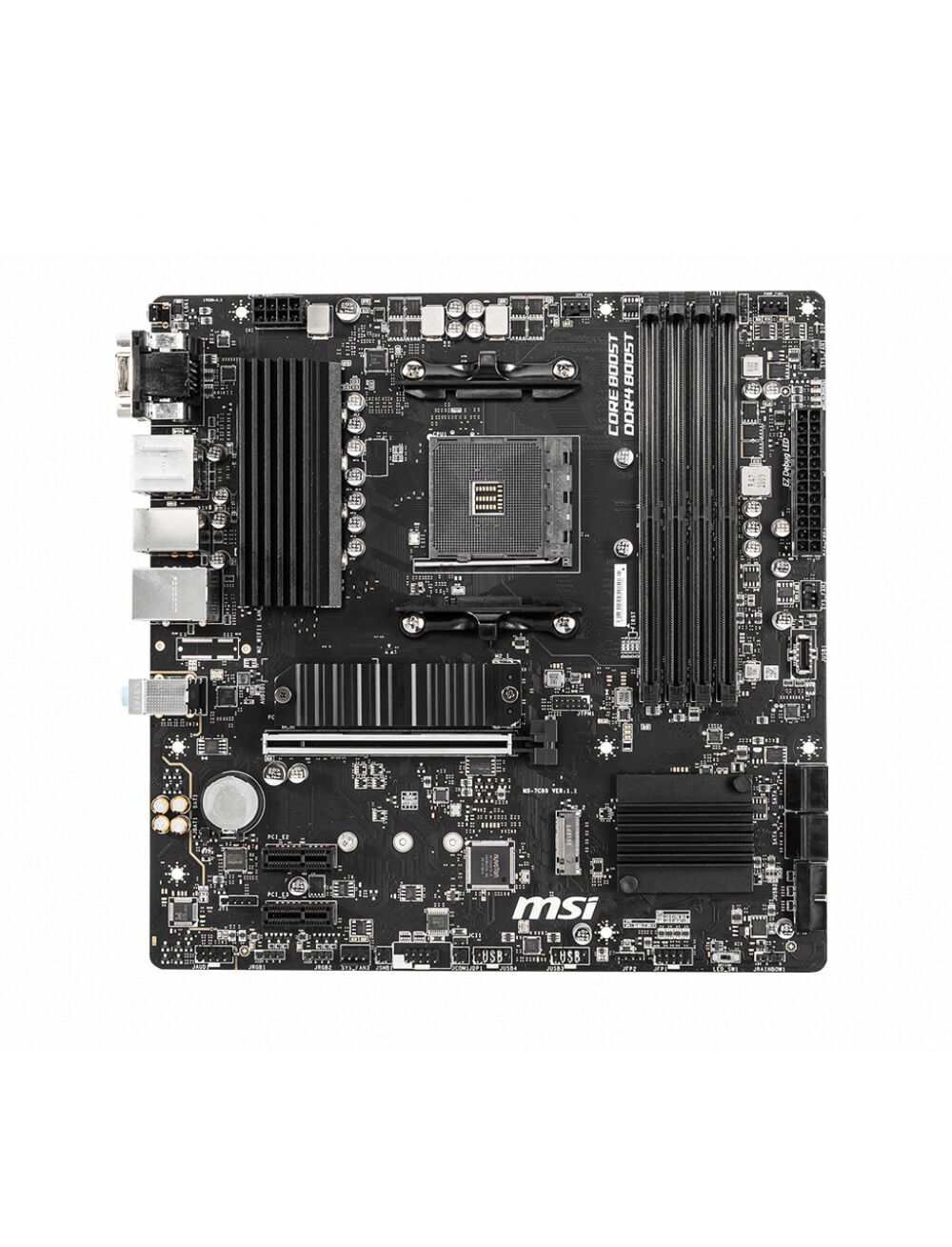 MSI B550M PRO-VDH. Κατασκευαστής επεξεργαστή: AMD, Υποδοχή επεξεργαστή: Υποδοχή AM4, Επεξεργαστής: AMD Ryzen™ 5, AMD Ryzen™ 7, 3rd Generation AMD Ryzen™ 9. Υποστηριζόμενοι τύποι μνήμης: DDR4-SDRAM, Μέγιστη εσωτερική μνήμη: 128 GB, Τύποι υποδοχών μνήμης: DIMM. Υποστηριζόμενες διεπαφές συσκευών αποθήκευσης: SATA III, Υποστηριζόμενοι τύποι μονάδας αποθήκευσης: HDD & SSD. Μέγιστη ανάλυση: 4096 x 2160 εικονοστοιχεία. Τύπος διασύνδεσης δικτύου Ethernet: Gigabit Ethernet, Ελεγκτής LAN: Realtek 8111HN