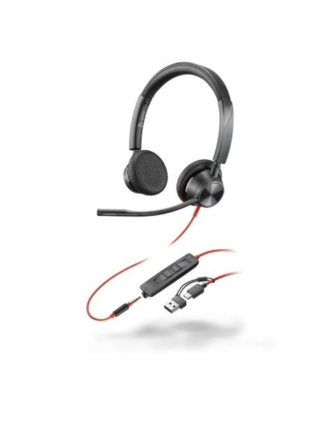 HP Poly Blackwire 3325 Stereo Microsoft Teams Certified USB-C Headset +3.5mm Plug +USB-C/A Adapter