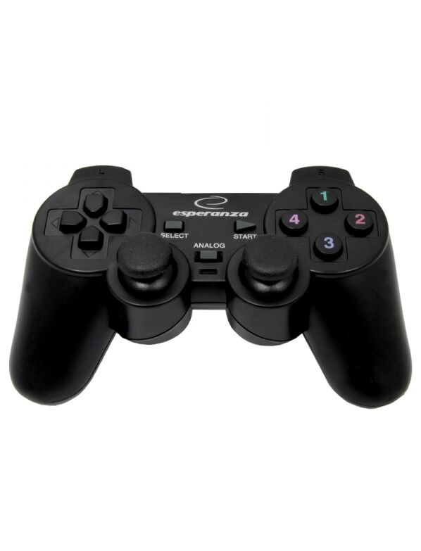 Esperanza EG102. Τύπος μονάδας: Gamepad, Συμβατές πλατφόρμες παιχνιδιού: PC, Playstation 3, Πλήκτρα λειτουργιών ελέγχου παιχνιδιού: D-pad. Τεχνολογία συνδεσιμότητας: Καλωδιωμένος (Ενσύρματος), Διασύνδεση συσκευής: USB 2.0. Χρώμα προϊόντος: Μαύρος (Μαύρο)
