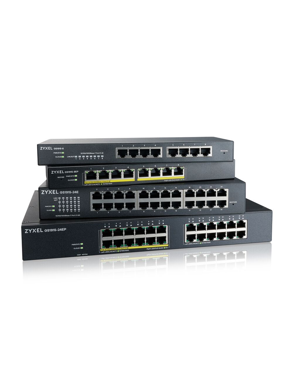 Zyxel GS1915-24E. Τύπος διακόπτη: Διαχειρίσιμος, Αλλαγή στρώματος: L2. Τύπος θυρών Ethernet βασικής μεταγωγής RJ-45: Gigabit Ethernet (10/100/1000), Πλήθος θυρών Ethernet βασικής μεταγωγής RJ-46: 24. Μέγεθος πίνακα διευθύνσεων: 8000 καταχωρήσεις, Χωρητικότητα δρομολόγησης/μεταγωγής: 48 Gbit/s. Πρότυπο δικτύου: IEEE 802.1p, IEEE 802.3, IEEE 802.3ab, IEEE 802.3af, IEEE 802.3at, IEEE 802.3az, IEEE 802.3u, IEEE.... Στήριγμα τοίχου, Τοποθέτηση rack, Τύπος μορφής: 1U