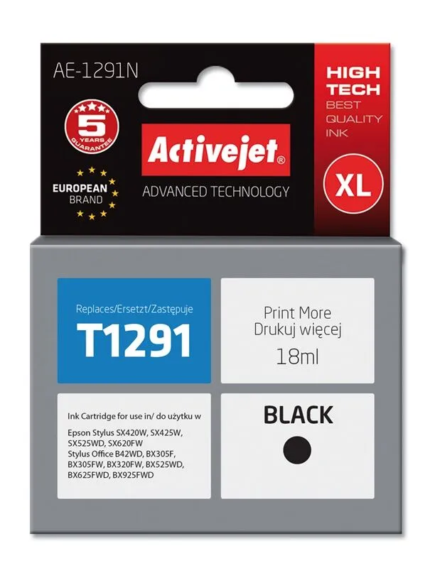 Activejet AE-1291N Ink (replacement for Epson T1291; Supreme; 18 ml; black)
